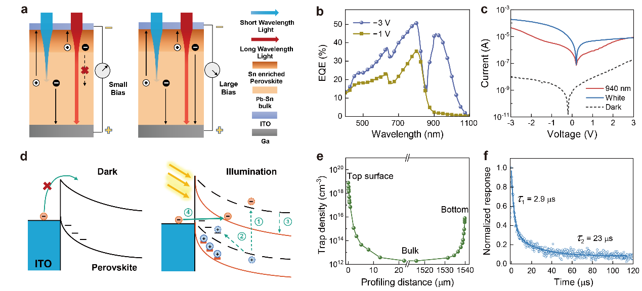 Regarding the requirements for detectors of day-night imaging without ICR, the research team designed and studied a photodetector that presents variable-spectrum responses by developing metal-gradient perovskite single crystals.