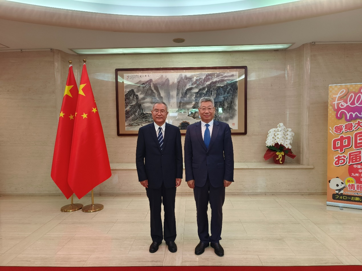 During the visit to the Chinese Consulate-General in Fukuoka, Consul General YANG Qingdong encouraged continued practical cooperation between JLU and Japanese universities.