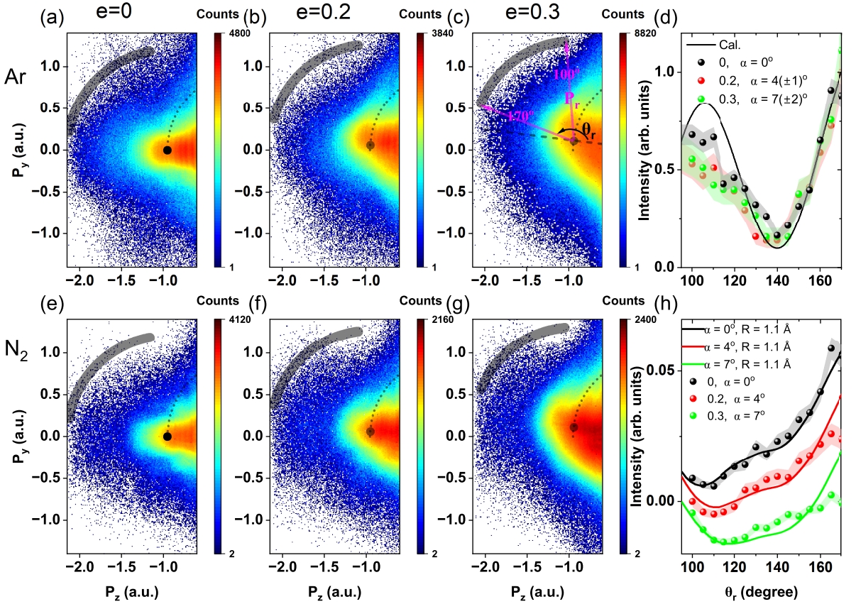 To solve this issue, JLU’s research team worked closely with the teams from Beijing IAPCM and University of Science and Technology of China. They proposed the elliptical laser-induced electron diffraction (ELIED) self-imaging technology, achieving high-temporal-spatial-resolution precise tomographic imaging of transient structures of gas-phase molecular ions.