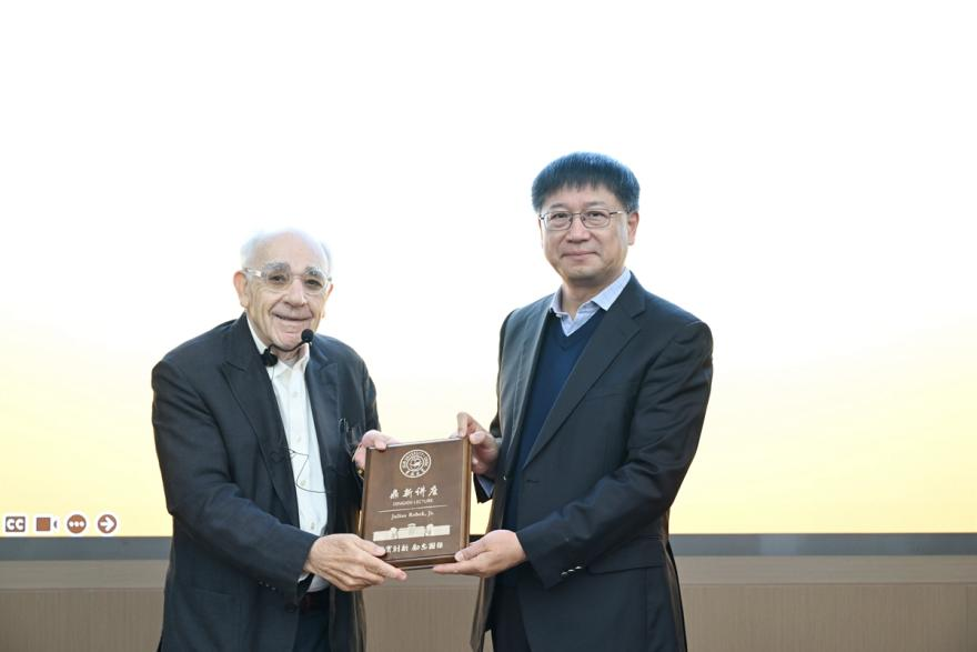 In his lecture, Professor Rebek began with the assembly of simple dimers, delving into the design of molecular structures and demonstrating how these are applied to areas such as chiral recognition and supramolecular catalysis. His presentation showcased the precise control of micro- and nanoscale cavities and offered valuable insights into how to conduct systematic academic research.