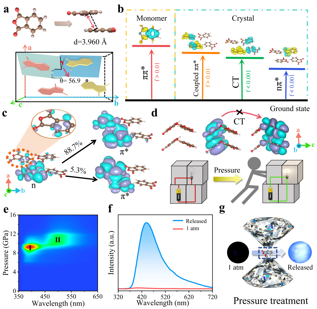 A team led by Professor YANG Xinyi from the College of Physics at Jilin University (JLU) has successfully induced efficient blue-light emission in phthalic anhydride (PA) crystals with initial non-emission – through high-pressure-induced molecular rearrangement.