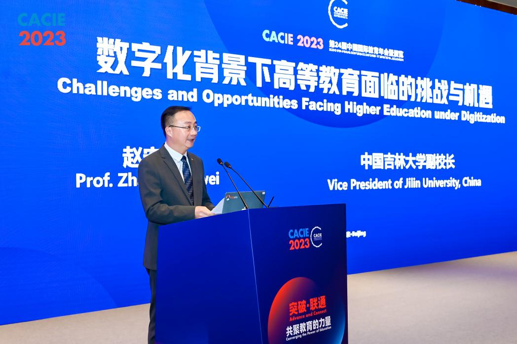 Jilin University (JLU) hosted a forum during the 24th China Annual Conference and Expo for International Education (CACIE) at the China National Convention Center in Beijing on Oct 26, 2023.