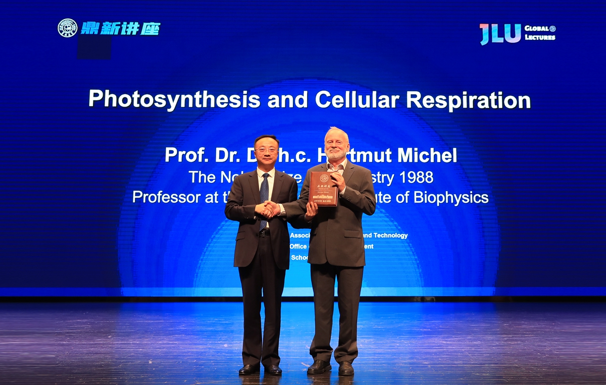 Professor Hartmut Michel, winner of Nobel Prize for Chemistry in 1988 and professor at the Max Planck Institute for Biophysical Chemistry in Germany, delivered a lecture, as part of the Dingxin Lecture Series, at Jilin University (JLU) on Sept 19, 2023.