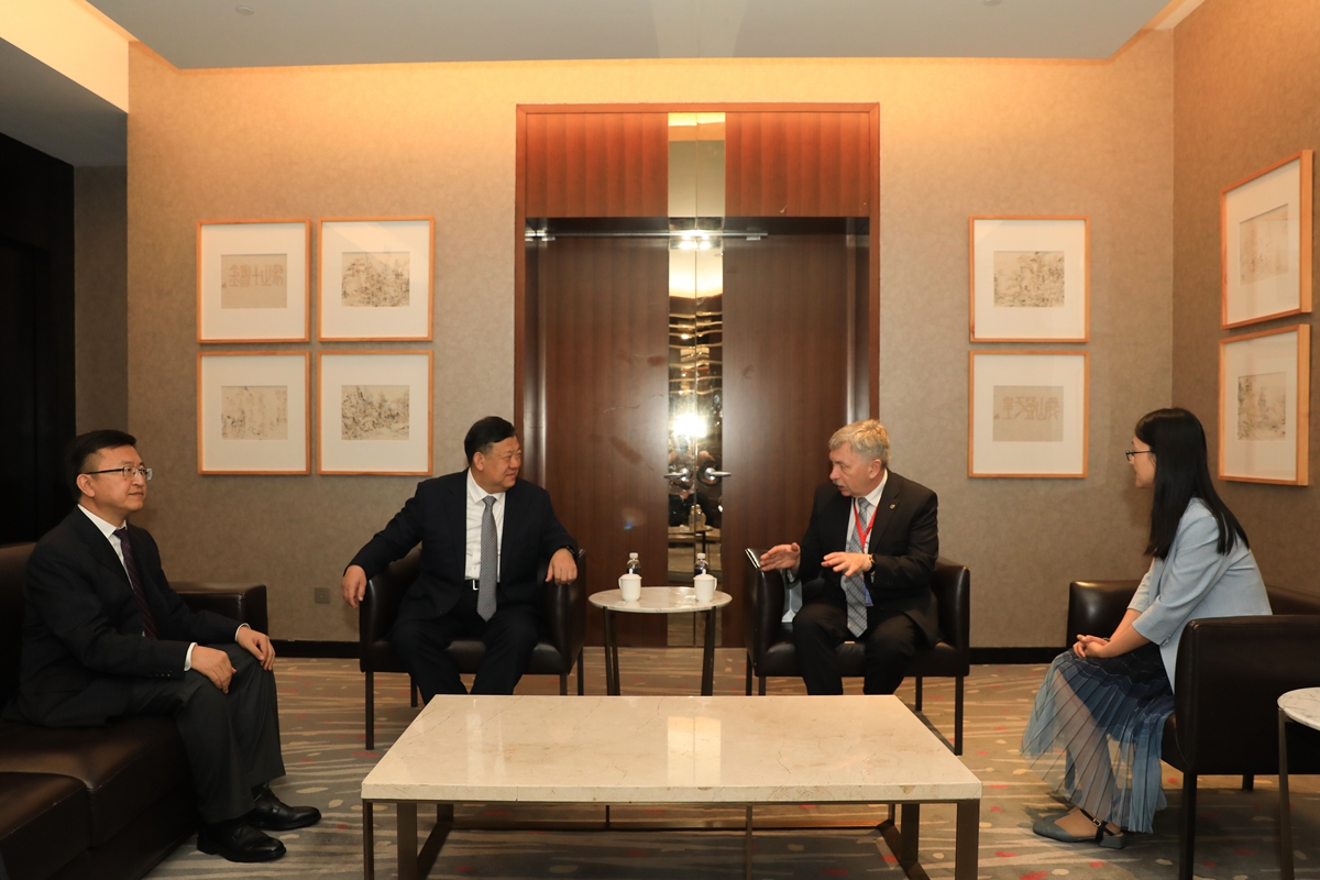 During the World University Presidents Forum on July 30, 2023, JIANG Zhiying, Chairman of the University Council, Jilin University (JLU), met with Indriķis Muižnieks, Rector of the University of Latvia to discuss advancing inter-university collaboration.