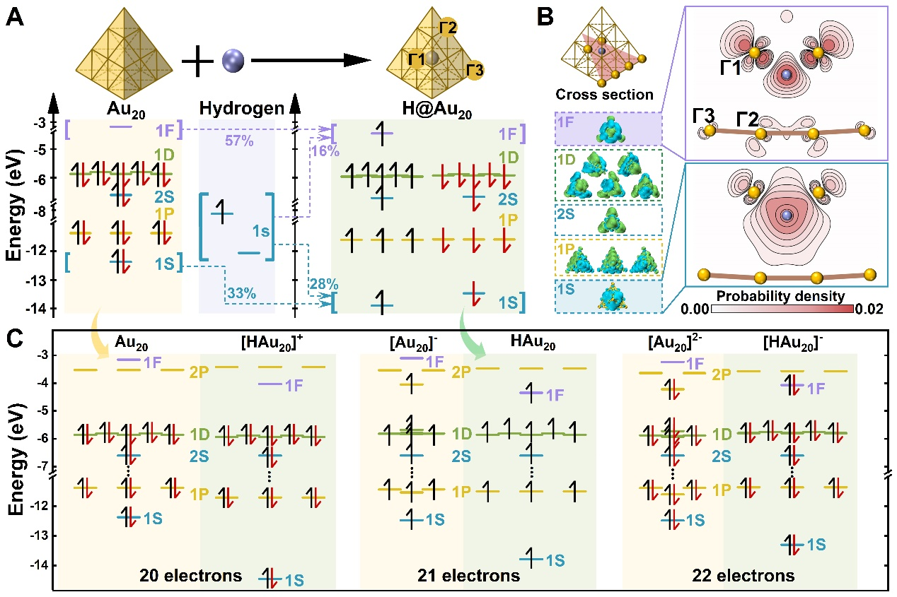 The related findings, entitled Parity-forbidden superatomic molecular orbital interaction and aurophilicity induced H–Au bonding inH@Au20, were recently published in Science Advances.