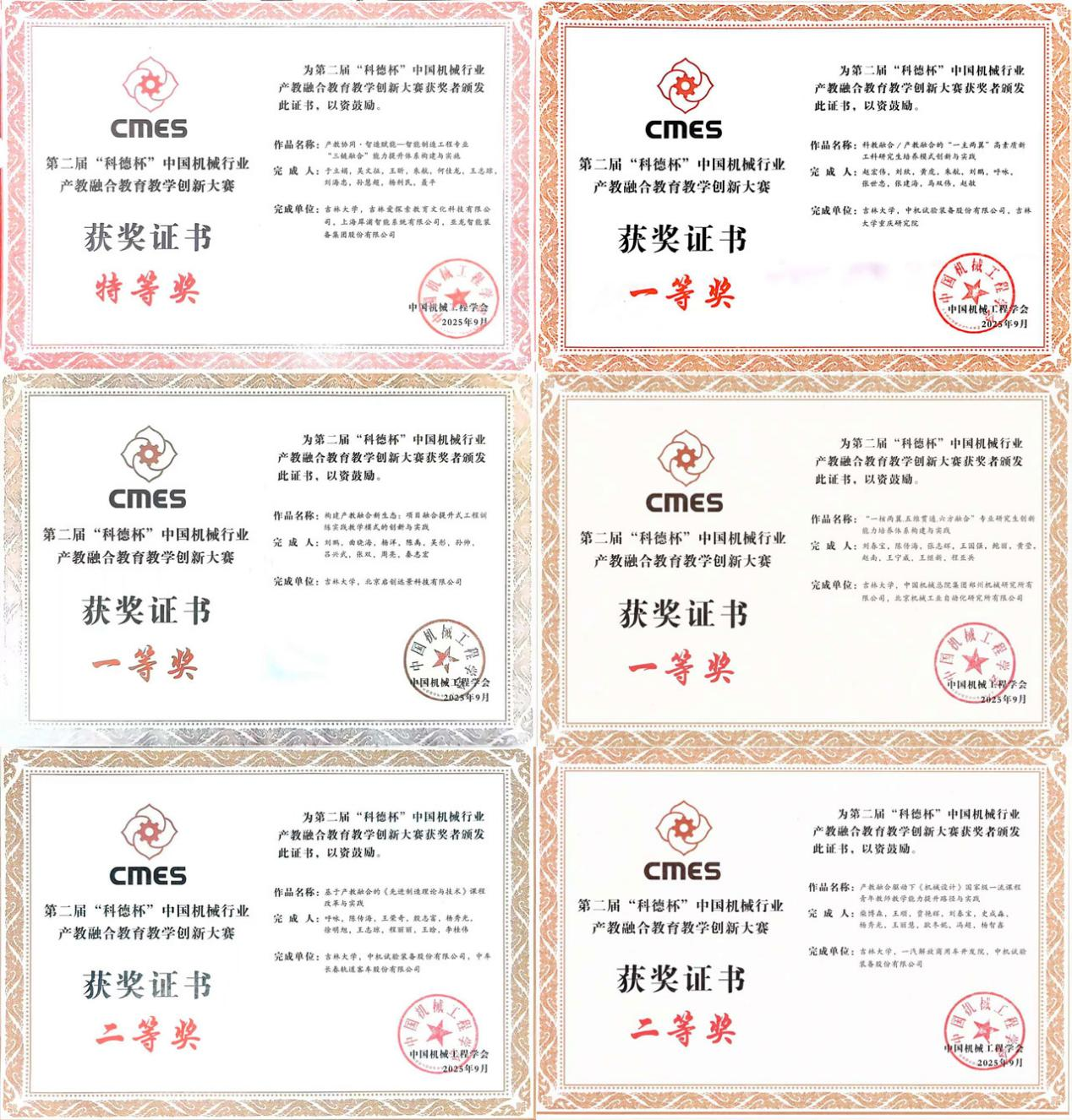 Jilin University Achieves Outstanding Results at the 2nd “Kede Cup” China Teaching and Education Innovation Competition for Industry-Education Integration in the Machinery Industry