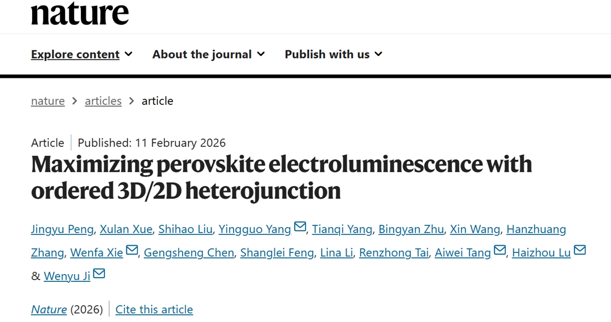 2026’s First Nature Paper: Jilin University Team Makes Key Breakthrough in Electroluminescent Devices