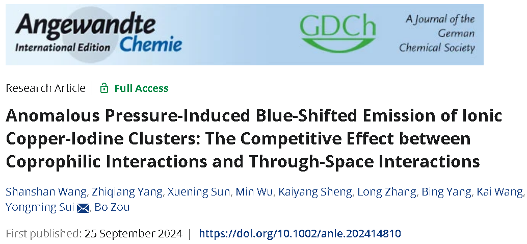 JLU progresses in high-pressure-induced luminescence of ionic copper-iodine clusters